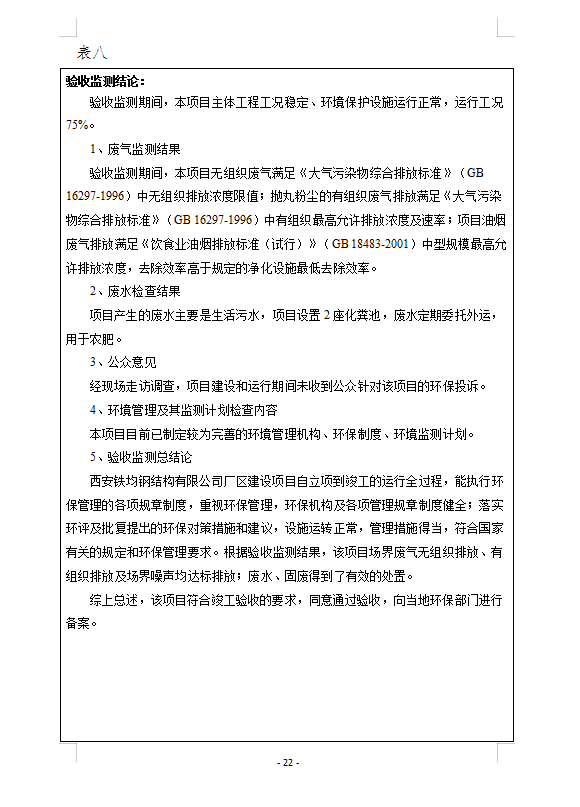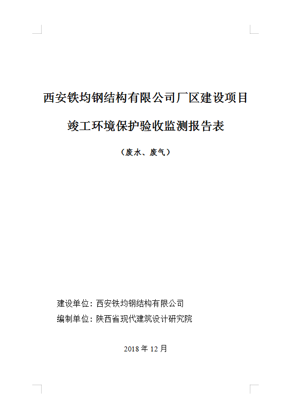 西安鐵均鋼構(gòu)廠區(qū)建設(shè)-驗收監(jiān)測報告(廢水、廢氣)